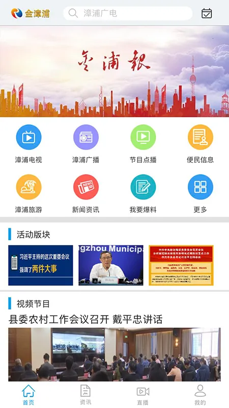 2. 为用户提供漳州市内最新最快的音视频及新闻资讯,紧紧围绕县委县政府各项中心工作,推送更多新闻。