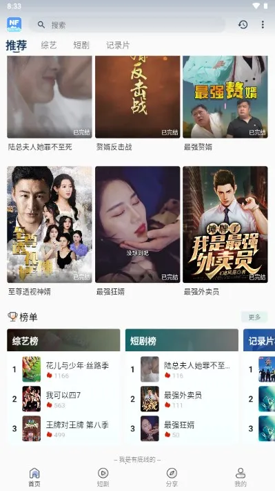 NF短剧是线上短剧观看平台,资源丰富免费,涵盖各类题材,质量高且播放快。支持投屏、智能推荐,有弹幕等互动功能,操作简单,适合碎片时间,热门短剧应有尽有。