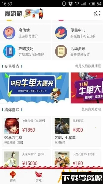 魔游游是个超受欢迎的手游交易平台,要是你想问魔游游改成什么 app 了,其实它现在就叫魔游游 app 呀!这个平台功能超强大,能解决不少游戏相关的问题。它汇集了海量游戏资源,像账号、装备、皮肤、钻石等都能放心交易。不管你是想卖游戏里的东西赚钱,还是想买心仪的游戏商品,在这里都能轻松实现。它支持多种手游充值渠道,付款方式灵活,操作简单到账快。接入了超 300 款热门手机游戏,覆盖范围广。新游戏上线能及时更新,还经常有折扣活动和充值优惠,能帮你节省开销。设有专业客服团队,售后可靠,交易过程安心。而且它还有一键启动游戏、图文资讯、游戏定制、玩家秀等特色功能,能让你更好地享受游戏交易和相关服务,真的很不错,赶紧去下载体验吧!