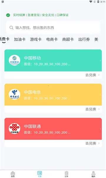 团团收安卓版是线上回收充值卡、购物卡的平台,可回收话费卡、游戏卡等。能在线估价,售出实时到账,有订单模块。安全可靠便捷,24小时自动化,覆盖全渠道,专注虚拟卡服务近8年。