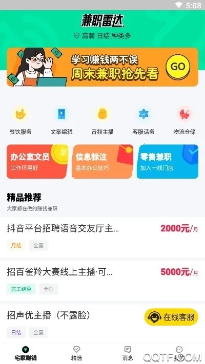 兼职雷达安卓版是一款岗位信息审核严格的手机找工作在线求职软件。提供海量真实靠谱兼职岗位,日更新1000个,活跃岗位10万。有多重保障机制,多样选择,上岗高效,助你快速找到心仪兼职。