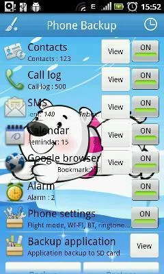 可对联系人、通话记录、信息、日历、闹铃、浏览器书签、常用系统设置及应用程序等进行备份还原,操作便捷。