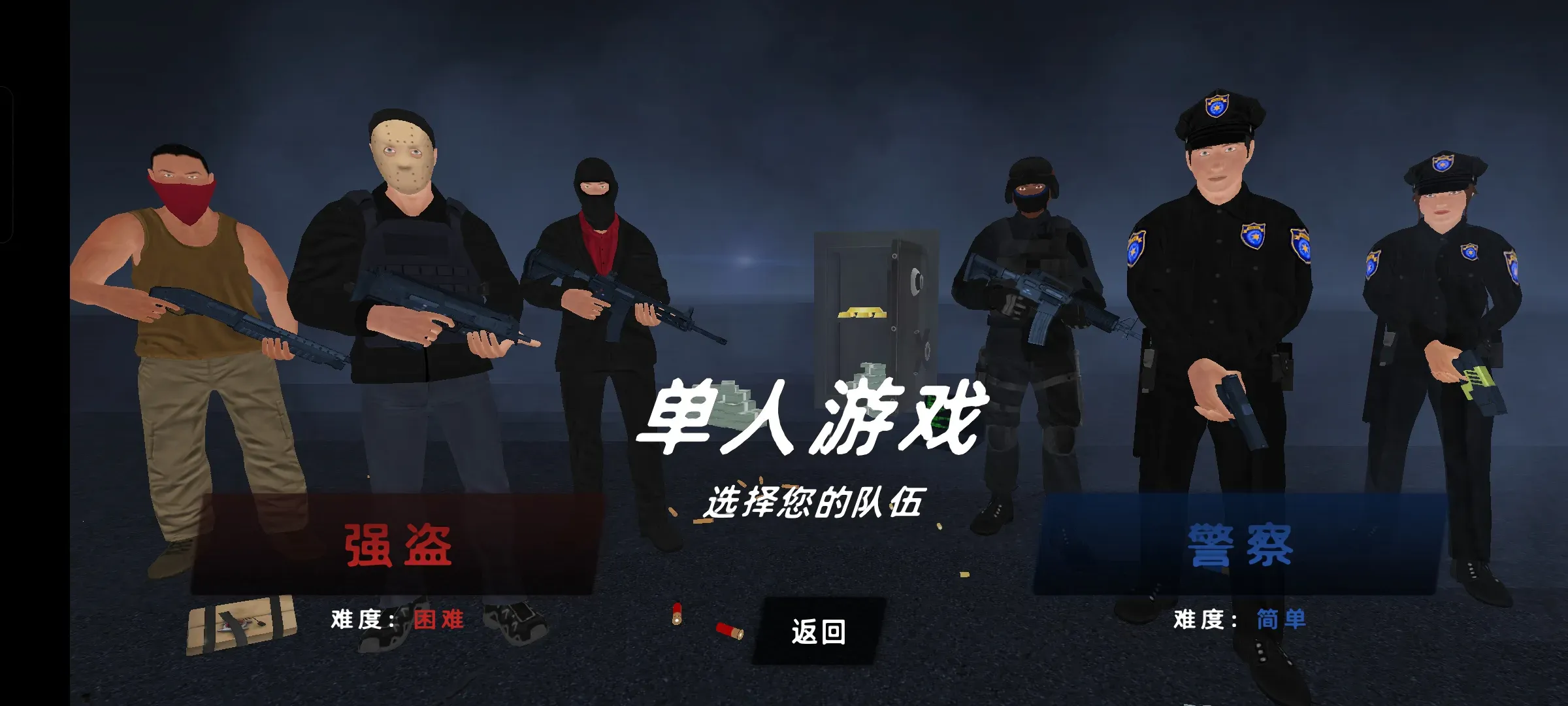反恐模拟器凭借其精良的3D引擎打造出极具沉浸感的场景,让玩家仿若置身真实的反恐现场。玩家作为正义警察在城市巡逻,与恐怖分子激烈枪战,爽感十足。可选警察或强盗身份,玩法多样。支持实时匹配对战,1v1博弈或多人混战刺激非凡。NPC枪法精准,需小心应对。与队友默契配合能高效歼灭敌人。游戏有着卡通3D视觉,绘图精致光影动态,代入感强。双视角反派玩法可自由切换,体验别样乐趣。武器收集系统丰富,能打造个性战斗。操作流畅音效逼真,带来刺激射击体验,圆射击高手之梦。无论是场景、玩法还是各种特色亮点,都能给玩家带来超棒的游戏感受,值得一玩。
