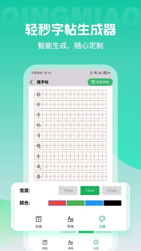 3. 界面简洁干净,方便用户简单流畅地操作,轻松上手。并且能够个性化生成专属字帖,清晰美观地展示。