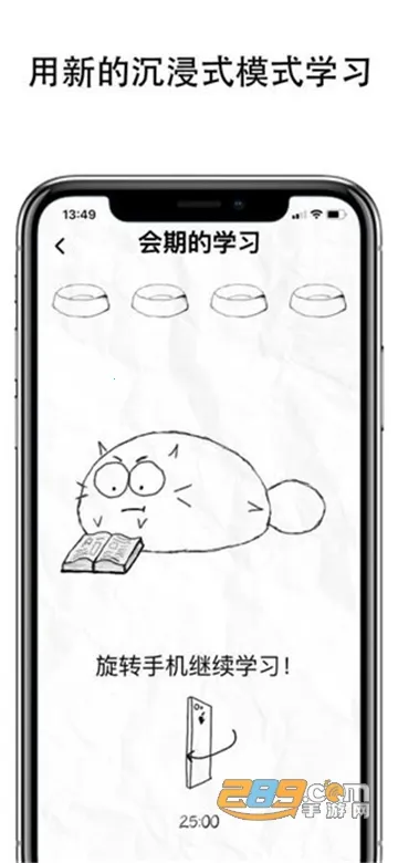 其优势显著,**翻转专注模式**让手机倒扣锁屏计时,专治分心;结束震动提示,倒计时完成后闪光灯和轻微震动双重提醒,无需频繁亮屏;猫咪健康反馈,猫的形态随专注时长变化,直观反映努力程度;微课程高效学,拆分知识点集中训练,降低学习门槛。