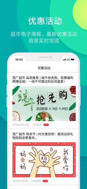 用户能通过它轻松获取超市的折扣和优惠券,在线领取门店优惠券,及时获知周边促销活动,享受无缝优质购物体验。其电子DM海报每期推荐精选商品,提升生活品质。电子会员卡让会员积分、零钱包信息和消费记录一目了然,结账时出示即可。新用户注册有礼,下载就能得券。还有消费积分系统,每笔购买积累积分可兑换实物奖励。