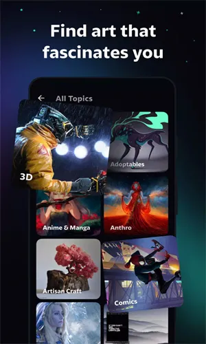 DeviantArt2026官方正版是一款知名艺术分享平台的官方客户端,为艺术爱好者提供海量精美作品。支持多种形式投稿,有分类检索系统。免费浏览大部分内容,付费会员享附加功能,还能交流互动、提升艺术水平。