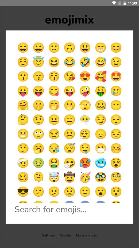 1.打开游戏,点击中间空白的按钮,它会自动加载emoji表情,需要耐心等待一会儿。同时上方也会显示是哪两个表情包合成的