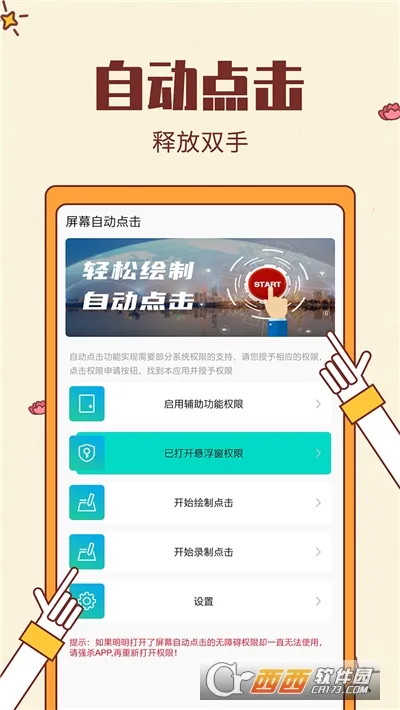 屏幕自动点击最新手机版是一款专业轻量免root的自动化点击工具。支持自定义点击参数,有悬浮窗控制,脚本管理方便,功能丰富。能提升效率,适用于多种场景,经多重安全检测,保障隐私,操作简单易上手。