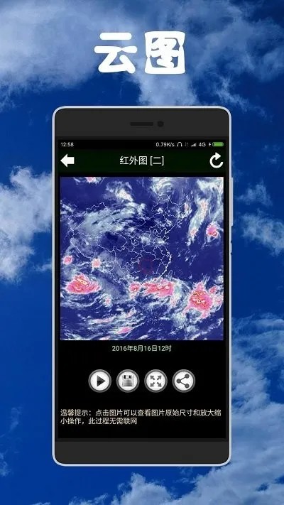 可视化呈现:提供一周内气温趋势图、实况温度计、动画风向风力盘图等,天气变化一目了然;还集成实时气象卫星图、雷达图、降雨预测、气象预报图、实况图等,全面掌握天气趋势。