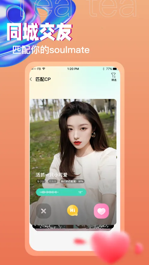 想通过语音轻松交友聊天吗?茶茶语音就能满足你!它是一款超棒的生活实用手机软件。在这里,能体验各种语音交友服务,平台会按兴趣和地理位置推荐感兴趣的用户。能实时与世界各地的人交朋友,语音聊天讨论各种话题,还能随时发布个人生活到动态广场分享。有多人聊天室,方便互相交流结交朋友,也能自由选择感兴趣的话题聊天。而且所有用户都实名认证,聊天安全又放心。能解决你孤单想交友的问题,不管何时何地,都能和众多好友畅聊,快速结识有相同爱好的朋友,扩大交际圈,轻松享受高品质交友服务,让你不再感到孤单。快来试试茶茶语音吧!