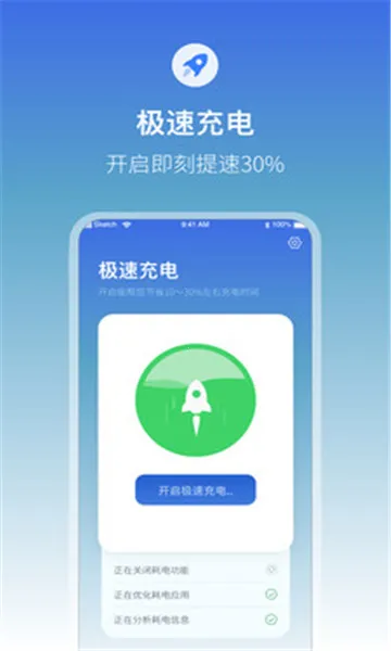 1、智能极速充电:接通电源打开应用,一键进入快充界面,自动识别并关闭耗电应用,有效加速充电时长,节省充电时间,还能延长电池使用寿命。