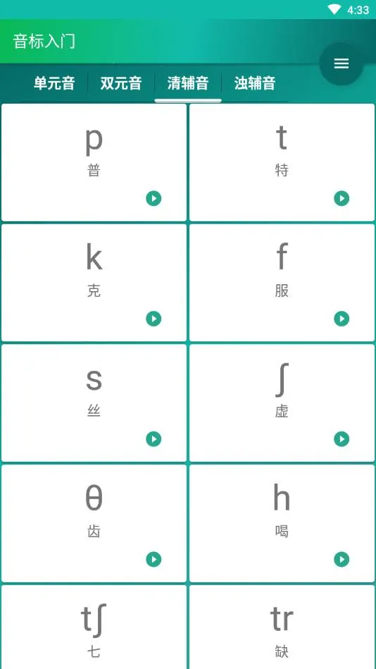 想快速掌握音标发音技巧,打下扎实英语基础吗?一款专注于英语音标学习的软件就能帮到你!它专为初学者设计,提供丰富学习资源,涵盖48组基础音标讲解与练习,还有22组易混音标对比训练。通过直观的音标教学视频和图文结合的方式,让你轻松学习。软件亮点多多,有音素级智能评测,能根据你的发音智能分析并给出个性化学习建议。还提供丰富练习资源,真人视频和图片结合精准演示发音要领。特色功能包括跟读对比,可录制自己发音与标准发音对比找不足。视频教学直观展示发音,自然拼读训练助你将音标知识应用于单词发音,提高口语表达能力。有详细发音技巧和重点说明,图文并茂,大量发音练习巩固知识,每个音标关联相应单词,让学习更有针对性和有效性,轻松开启音标入门学习之旅。