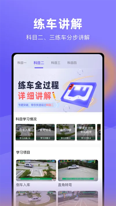 这个软件提供驾考全新题库,根据驾考考试大纲实时更新,覆盖小车、客车、货车、摩托车等全类型题目,权威讲解还有答题技巧,能帮你系统复习知识点,提高答题准确率。仿真实战模拟真实考试,让你提前熟悉考试界面与流程,攻克重难点,增强信心。通过专属学习报表,你能随时掌握学习进度,高频考点和易错点会智能剖析,全面复盘,高效答题。还有VIP精品课程,科目一科目四重点高频题语音课程、精品题库,科目二科目三专业教练全景实拍视频,多角度讲解直击考点。绑定驾校后还能记录打卡学时,真的超方便,助你轻松拿到驾驶证。