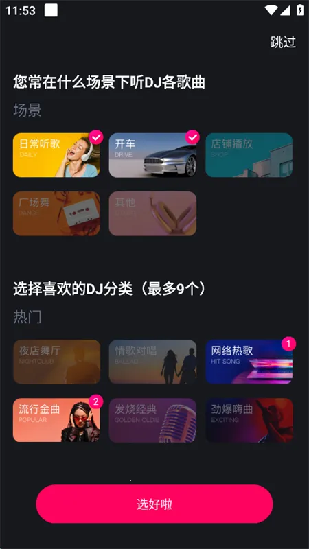 1. 海量正版资源:拥有数十万正版DJ嗨曲,涵盖中文、英文、3D环绕、日韩等多种语言风格的舞曲,以及车载、夜店、苏荷等多种场合适用的音乐,资源丰富任你畅听。