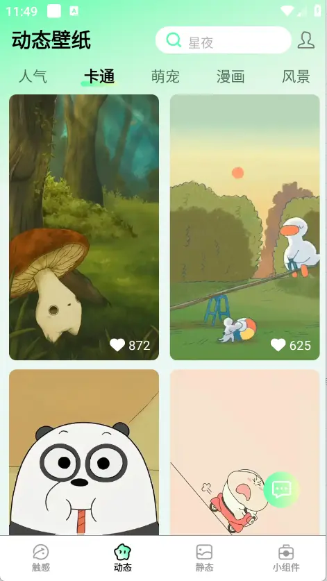 壁纸全部免费且下载方便,还会持续更新。软件集触感动态静态壁纸与萌趣小组件于一体,功能丰富实用。