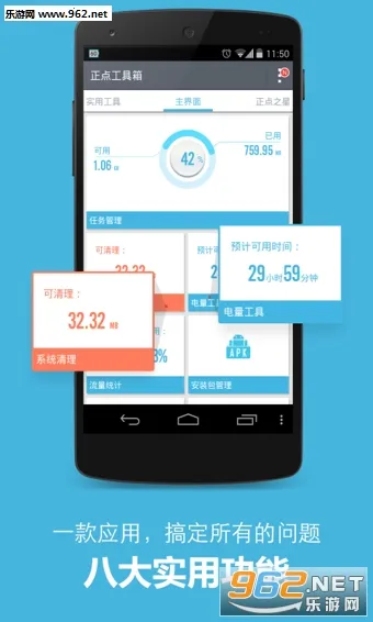 3. 拥有电量管理、应用锁、流量统计、免打扰、任务管理等众多实用功能,众多工具一键使用,方便快捷。