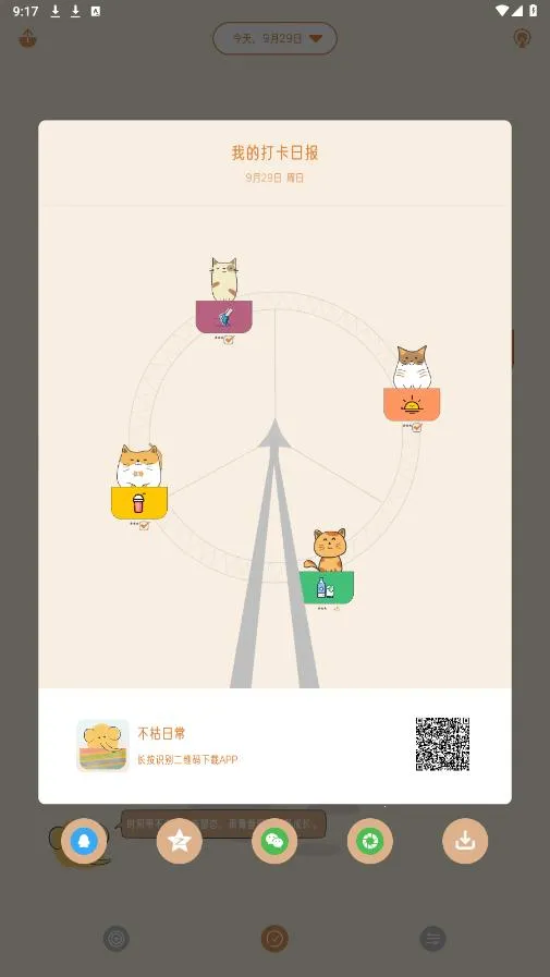 独特摩天轮打卡系统,每次打卡摩天轮转动,上面的萌宠乘客守护小习惯,让坚持变得轻松欢快。