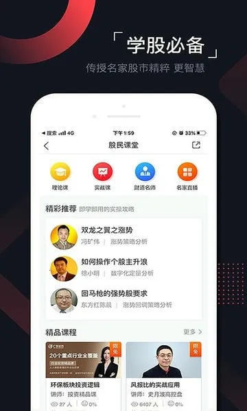 3、直播视频答疑解惑:开启财经大咖面对面的任意门,直播中直接给您最有效讯息。名师财俊齐坐镇视频课,海量免费看,为您解答投资疑惑。