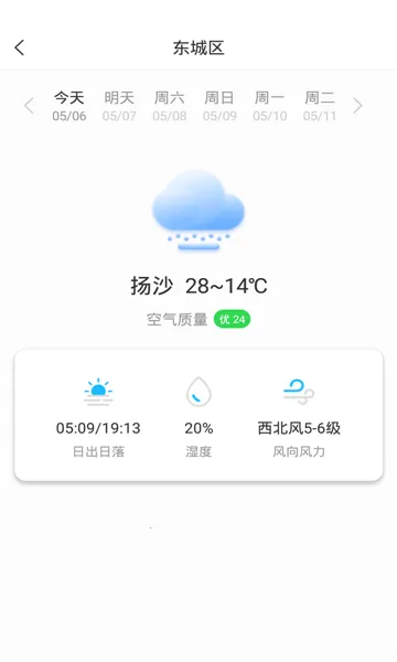知云天气预报类软件能帮咱轻松搞定天气查询这件大事儿!它功能超强大,能提供24小时天气预报、15天内天气预测,还有空气质量、生活指数等多种服务。不管是出门旅行还是日常出行,都能提前根据天气情况做好准备。比如要出门就知道该不该带伞、穿啥衣服合适。它能自动准确定位,不管你在哪,都能快速了解当地天气。就算退出app,系统也会在后台推送天气预报通知栏消息,点击就能快速跳转查看城市天气详情。天气卡片界面还能直接通过第三方平台分享。而且能自由添加关心城市,第一时间掌握天气变化。有了它,咱就能随时知晓最新天气信息,多元化天气随时查看,每天的天气情况实时了解,让生活更便利,出行更安心,赶紧下载一个吧!
