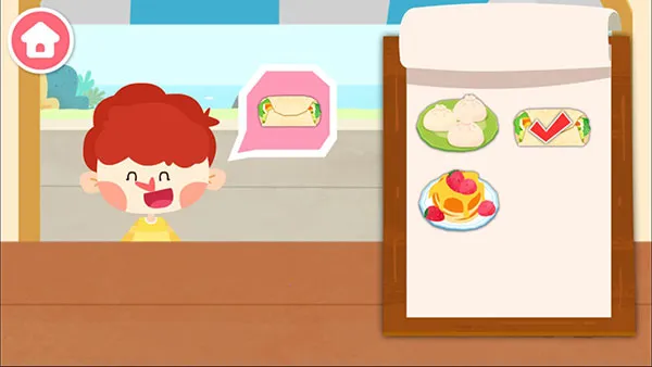 3. 趣味经营体验:宝宝扮演厨师兼收银员经营早餐车,接待小客人点餐、制作并送餐,享受经营乐趣,快乐启蒙。