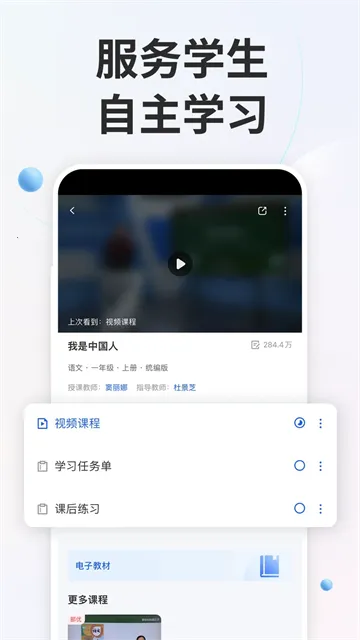 中小学智慧教育(中小学学习平台)专为中小学生打造。它拥有丰富学习资源,涵盖全年级课程,各学科皆有。支持免费网课且能与在线老师交流,有助于提升成绩。注册简便,填少量信息即可。选择课程轻松,几步就能开始学习。下载课件便捷,按年级科目册次点击下载按钮就行。还提供专业化学习服务,内容贴合学生需求兴趣,能激发学习兴趣,同时给出学习报告,助力学生和家长了解情况,及时调整计划目标,随时随地都能学习。
