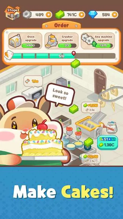 1. 你将成为蛋糕工厂所有者,在工厂内装备现代化制作机器,配置仓鼠经理管理,实现全自动化流水线生产作业,源源不断生产美味蛋糕,完成订单收获奖励。