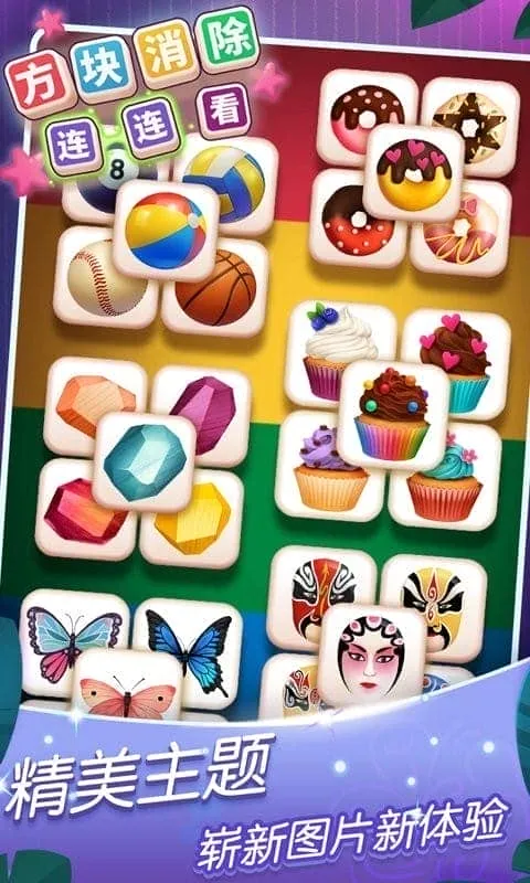 方块消除连连看2025最新版本是一款经典消除益智游戏,融合连连看与消除玩法,操作简单。有上千种随机图案,多样炫酷道具,能锻炼智力眼力,享受收集乐趣,通关可解锁下一关,还有精美主题与福利。