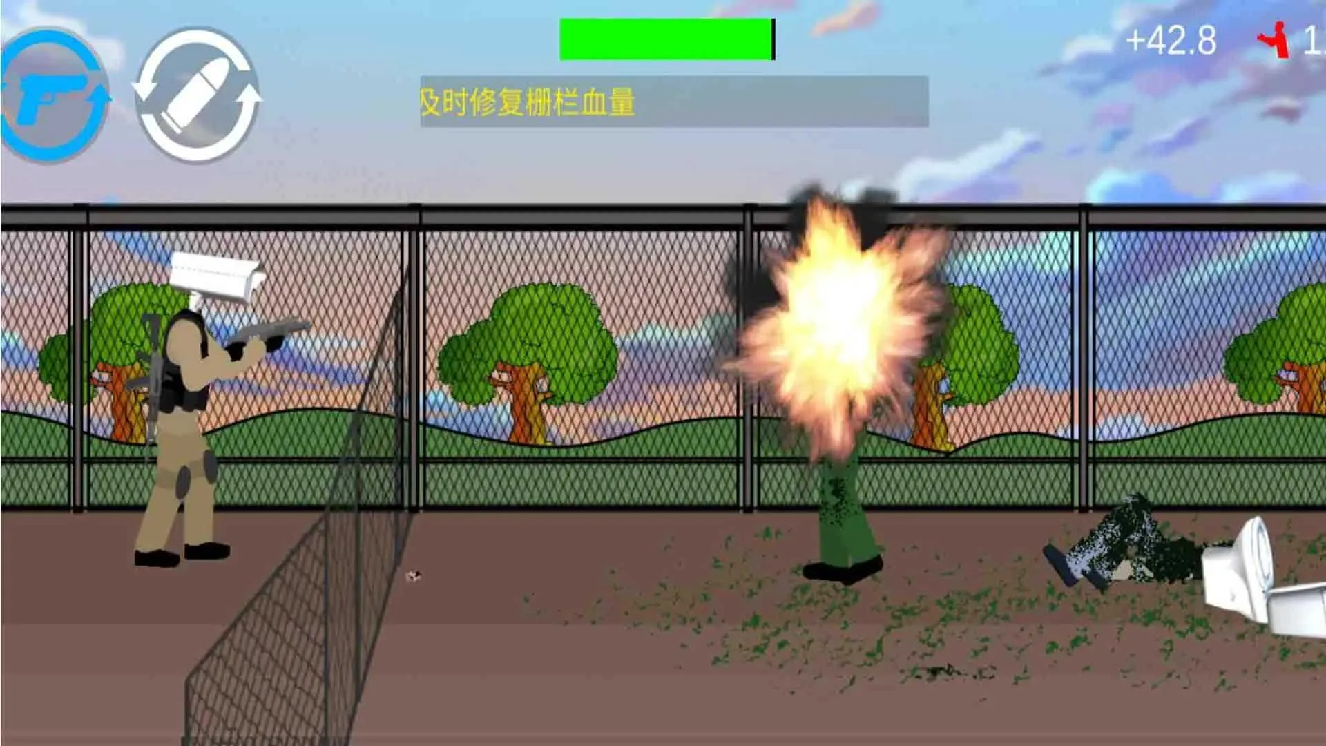3、操作简单易上手,触摸屏幕即可同时瞄准和射击,还能通过勤换弹夹或踢腿僵尸争取换弹时间,同时可根据自身熟练度调节游戏难度。