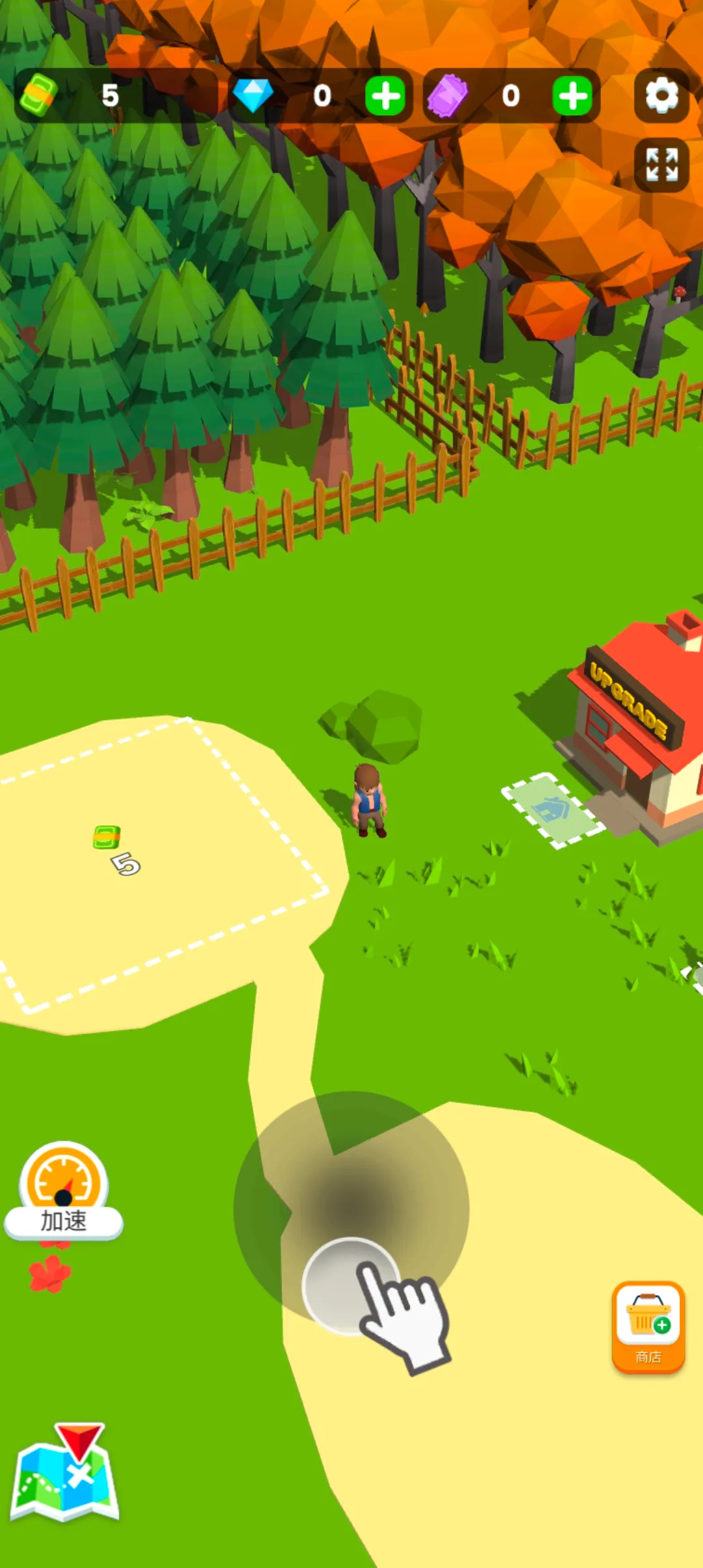 游戏玩法丰富,进入后拖动屏幕控制角色移动砍树,砍完放仓库。有资金就招募工人、建设加工厂加工木材,再运输到汽车换奖励,还能在家升级属性、完成丰富任务。