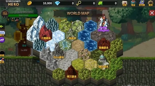“无名英雄”是一款超有趣的像素风格地牢探险游戏。它能带你深入神秘村庄展开刺激冒险。游戏结合经典像素艺术与RPG玩法,以闯关击杀BOSS提升实力为目标。这里有丰富多样的战斗角色可选,每个角色都有独特技能。所有职业技能攻击速率满值且无冷却,随时能自由战斗,超畅快。其卡通风格的精致像素画面,带来沉浸式体验。进入游戏后,每天登录可领签到奖励。能选择副本挑战,还有自动狩猎模式轻松挂机刷副本。通关副本可升级角色、掉落珍贵资源。挑战失败能用钻石复活,每轮限一次。背包里能为角色配备装备增强战斗力。默认英文界面,点击右下角语言选项选繁体中文就能轻松切换。快来体验这款充满策略与乐趣的冒险游戏吧!
