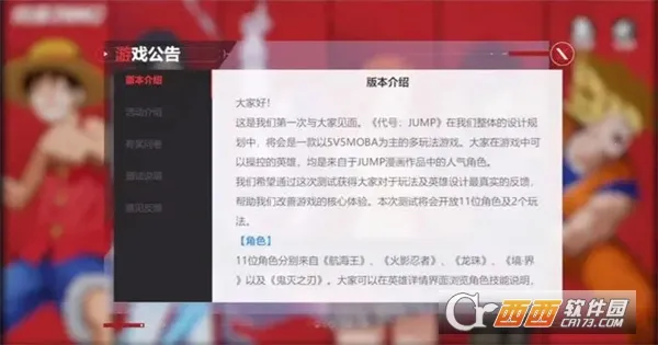 代号 Jump 官方正版是一款全新的 MOBA 类 5V5 实时竞技对战游戏。它致力于为玩家打造沉浸式热血对决体验,游戏中汇聚了众多高人气动漫角色,每个角色都有专属技能机制与差异化属性设定。玩家能根据自身操作风格和战术需求灵活选择,并与队友紧密配合,组建高效战斗阵容,迎接全服玩家的激烈对抗。