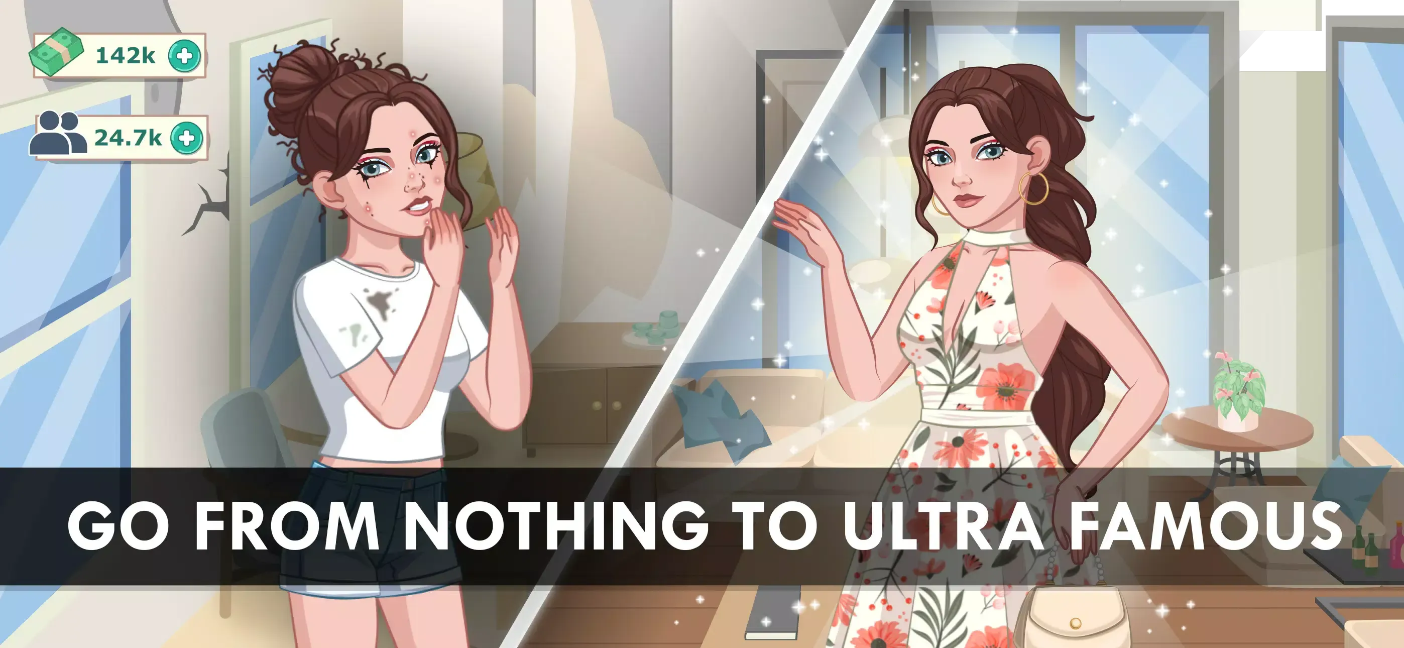 在这款游戏中,初到城市的你怀揣成为网红与好莱坞明星的梦想。可定制虚拟形象,随名气增长解锁多样服装妆容,参加各类活动,聘请设计师,探索地点,购买房产,一步步成为耀眼明星。