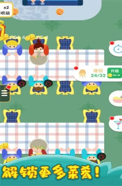 2. 个性化餐厅打造:可自由进行餐厅装修,从仙女灯到盆栽,甚至厨师服装都能按个人风格布置,还能招募店员提升上菜速度,打造专属于自己的餐厅。