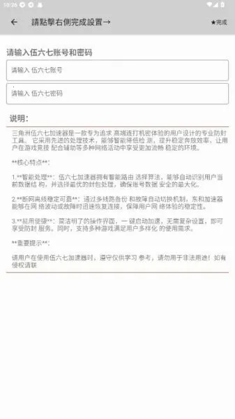 伍六七端口是一款超棒的网络优化工具!它能有效解决网络延迟高、掉线卡顿等问题。其亮点多多,支持节点与 DNS 自定义,可按需选择加速模式,还能设置端口或 IP 访问规则。使用起来也不难,先打开训练端口添加账号,填好用户名和密码,接着设置允许列表,选择端口浏览器和平精英验证,验证成功后查看是否跳出百度,开启端口并重新验证就行。它优势明显,所有核心功能一键开启,无需复杂步骤就能启动全局加速。特色也不少,允许自定义允许或禁止访问的端口和 IP,内置多种实用工具可实时掌握网络状态。不管是主流手游,还是跨境软件、远程办公等复杂网络环境,它都能提供网络优化服务,安全又稳定,端到端加密保护,让你网络使用无忧,快来试试吧!