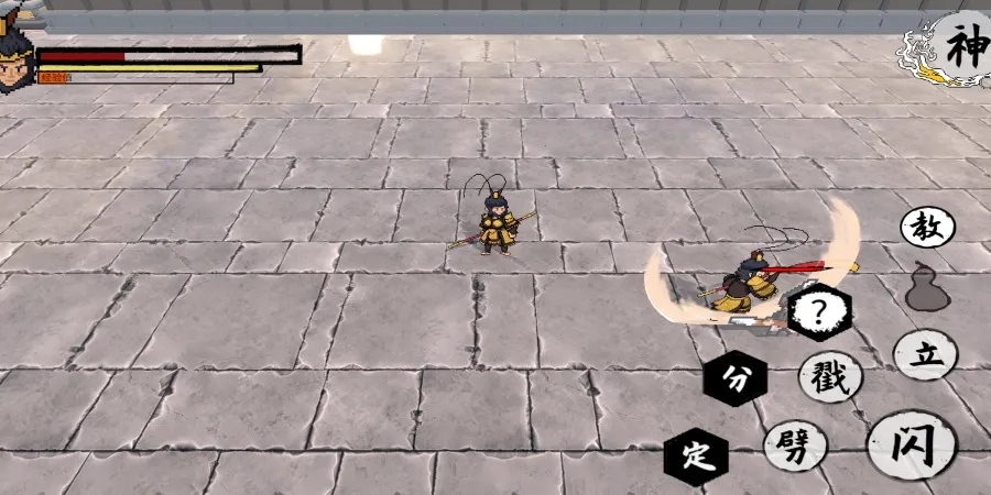 它玩法多样,下载进游戏先完成剧情救人,学会基础操作后就可战斗闯关。战斗操作有劈、戳、立等。还有丰富技能,像铜头铁臂能反弹攻击、聚形散气可制造假身躲避危险、身外身法能分裂分身攻击等。