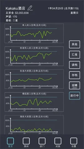 3. 资金积累后可扩大饭店规模、招揽人才、提高效率。运营中能通过奢华管理旅行快速晋升星级。具备存档功能,可随时保存与重置游戏进程。