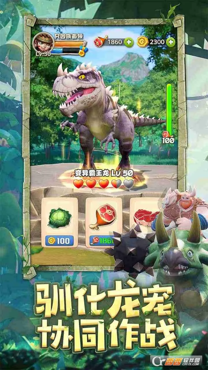 1. 组建强力恐龙军团:可收集驯化数十种史前蛮荒恶兽,组建强大军团守护家园。