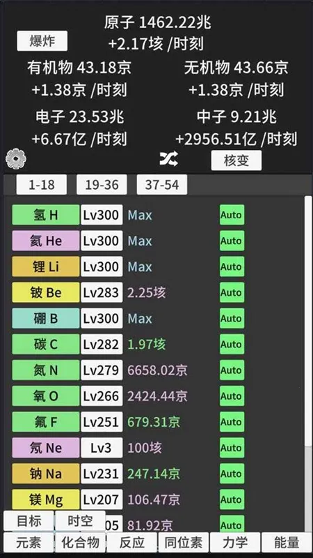 原子暴走1.52内置修改器中文版最新版是一款由第七基地研发的放置手游。玩家在微观世界通过导引元素之力提升原子产量,有多种重置选项和秘密成就系统,能解锁升级、挑战自我,感受独特增量玩法与微观探索乐趣。