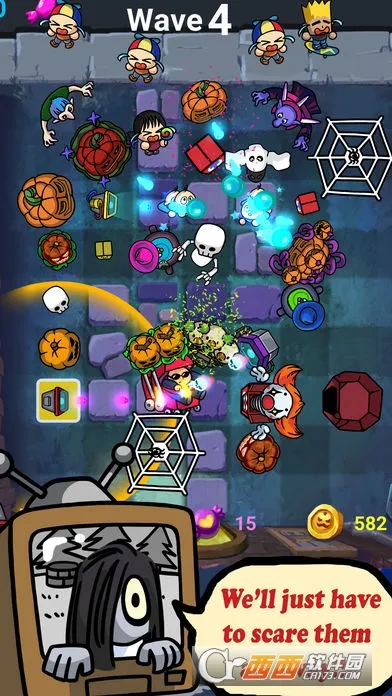 鬼屋大作战是一款以万圣节为背景的塔防游戏。玩家扮演鬼屋主人,放置南瓜灯、幽灵、骷髅等道具吓跑来捣乱的孩子。游戏采用Q版卡通美术风格,融入万圣节怪诞元素。