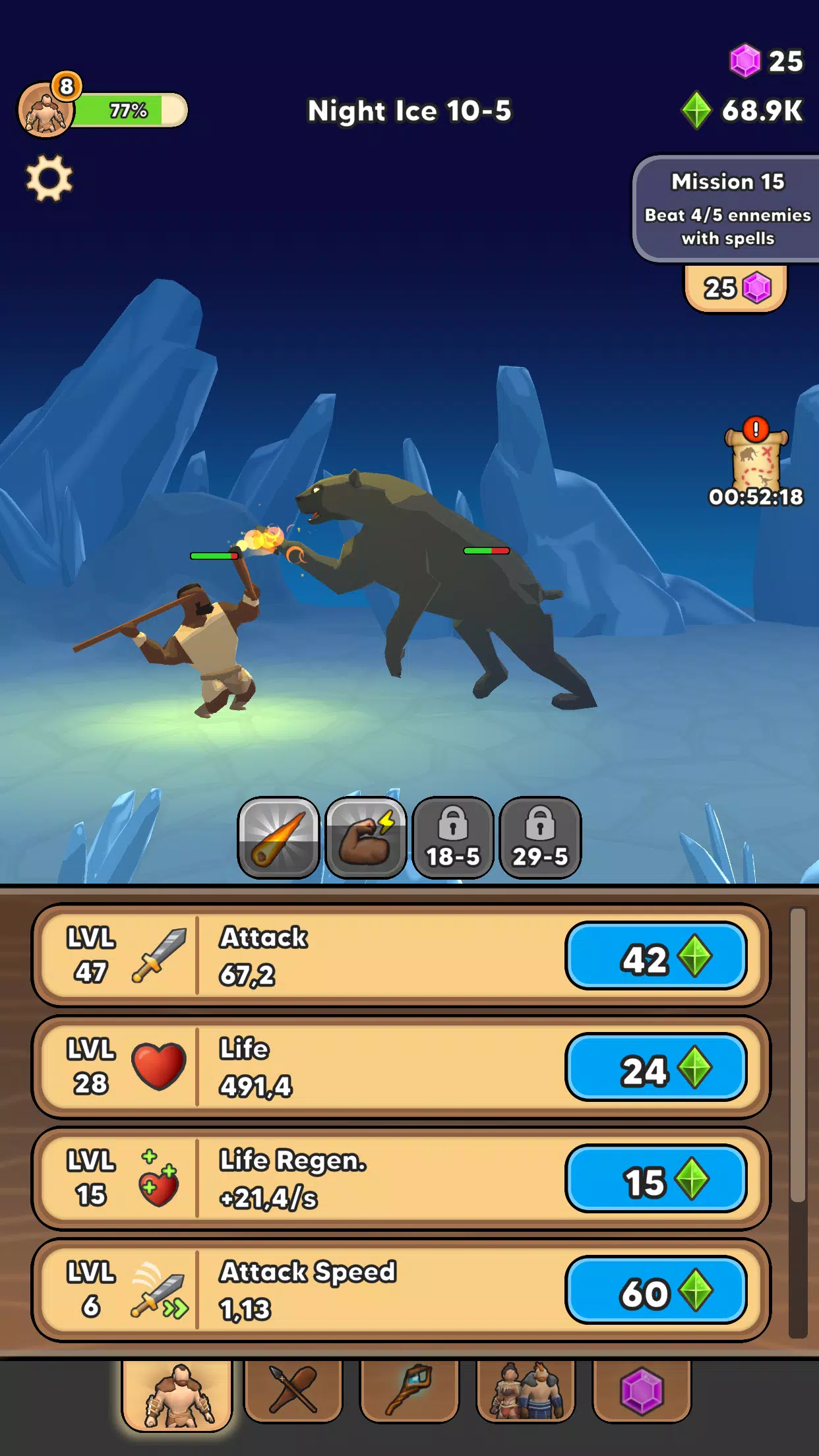 猎人进化是一款全新的放置类角色扮演游戏。在游戏里,你要与怪物、恐龙战斗谋生,通过战斗积累经验强化角色并解锁新技能。随着时间推移解锁新装备提升战斗技能,还要与强大Boss较量赢取战利品。成长过程中能解锁强大法术,击败更强敌人。还可将装备融合升级,通过无限升级进化猎人,获得更多属性提升和新皮肤。作为放置类游戏粉丝,在这里你能杀出一条血路,赚取金钱,成为部落冠军,它定会成为你的新宠。