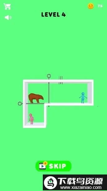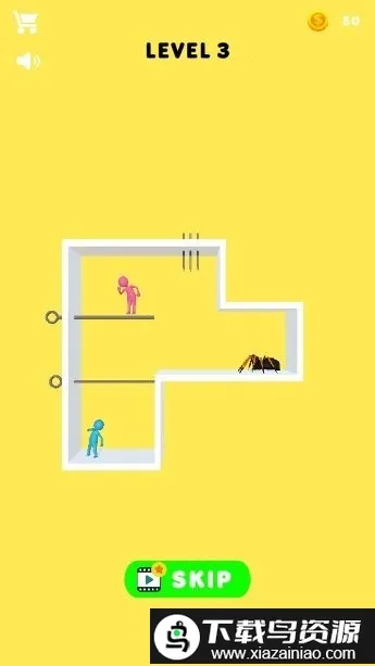 绳索益智救援是模拟救援主题手机游戏,操作简单,关卡多样。玩家要拔出插销让红蓝小人会合,后续关卡难度递增。场景丰富,解谜挑战多,能锻炼观察力与逻辑思维,带来趣味闯关体验。