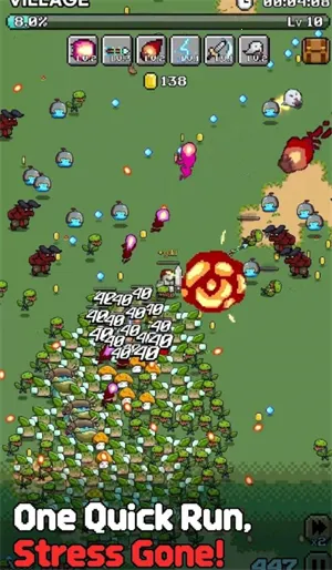 这是一款竖屏像素风肉鸽冒险手游。它有着诸多亮点与特色。双IP融合,继承爽快割草基因,用精致像素画风重新演绎,既有经典玩法的爽感,又有探索魅力。能多角色协同作战,不同职业技能组合产生连锁反应。武器进化合成系统让武器视觉与威力同步蜕变。还有动态环境互动,可利用场景元素周旋。其特色在于16-bit风格设计,光影细腻、动作流畅。每局战斗获取的方块资源可解锁新角色等。每次远征面临路径抉择,支持好友组队探险。优势是操作简化,新手易上手,单局时间短且可暂停存档,角色与武器解锁方式公平,手机平板账号数据同步还支持手柄操作。整体带来了爽快的肉鸽刷怪快感,虽关卡随机性有提升空间,但易上手难精通随时爽的理念很吸引人。