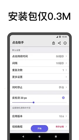 点击助手最新手机版是一款屏幕点击辅助软件,免root,能设置定时任务。有悬浮菜单、语音唤醒等功能,可自动滑动、录制、导出脚本。操作简单,安装包小,还能自定义点击参数,带来便捷玩机体验。