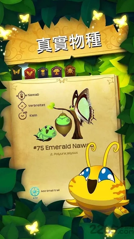彩翼蝴蝶保护区是一款以生态保护为主题的养成游戏。玩家经营森林培育蝴蝶,能见证其完整生长过程,还可互动。游戏画面精致,解锁多种蝴蝶及知识,已解锁无限蜜糖与金币,助轻松培育。