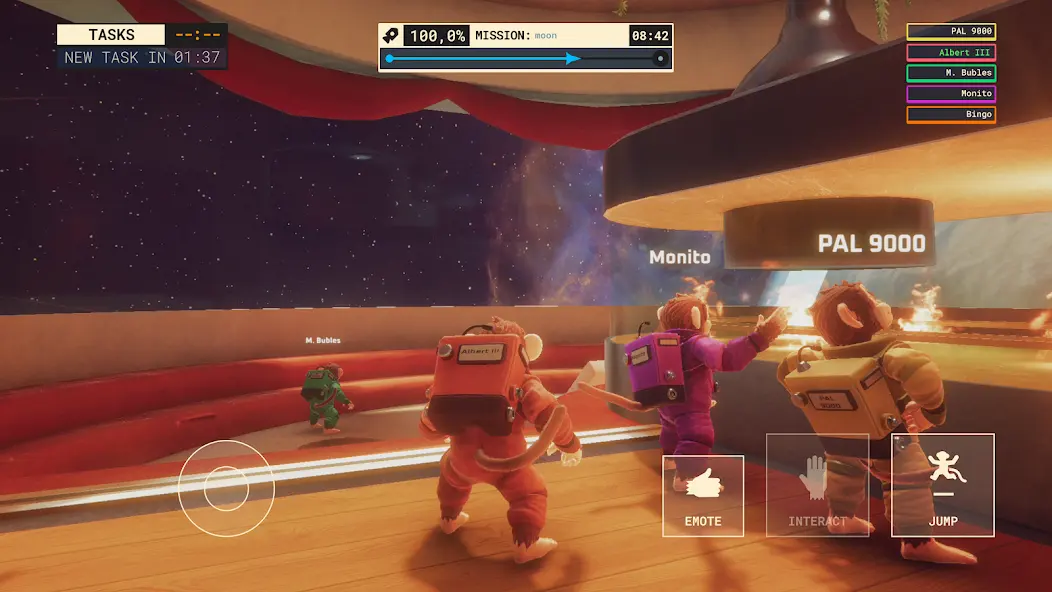 《猩空大冒险(太空猴子号游戏)》是支持18人合作的多人动作游戏。可线上联机或离线单人玩,有40款小游戏,能处理突发状况、升级舱室。还有8大特色舱室,6种难度模式含无限模式,等你来与太空猴子一起冒险。