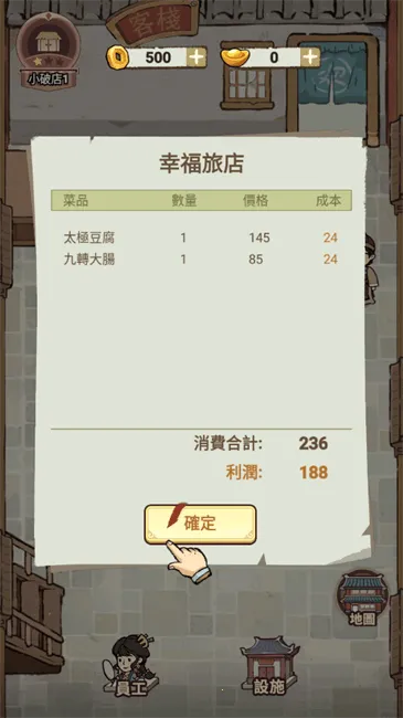 我在江南开客栈内置菜单说明:进入游戏后,轻点客人头像开启点餐流程。确认订单,后厨自动烹饪,菜品完成点击出锅上菜。客人用餐毕,点击结账收银两。最后轻点桌面打扫恢复环境。游戏采用低门槛高自由度经营逻辑,支持个性化装潢,涵盖多种江南特色菜肴。每位客人有独特性格故事,水墨场景随四季变,搭配古乐音效,还有真放置机制,离线也能获益,上线畅享经营成果。