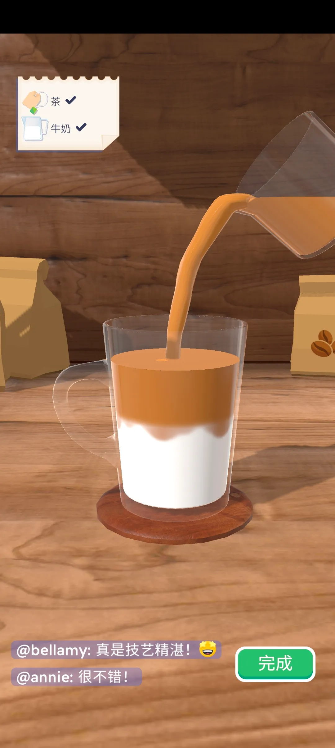 3. 高度拟真的制作过程:涵盖倒液、混合、搅拌、装杯等多个步骤,给你沉浸式体验,仿佛置身真实的咖啡制作场景。