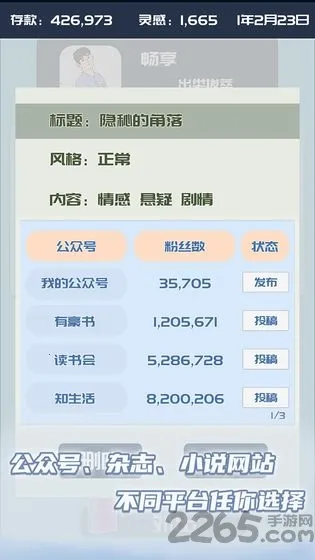 2、丰富养成经营玩法:拥有多元养成经营模式,从创建公众号、挖掘灵感写文,到完成目标任务赚收益,还能通过广告变现、与粉丝互动优化内容。兼顾创业与生活,领养宠物、约好友,为创作增添趣味,更能购置房产、收集萌宠解锁隐藏灵感。