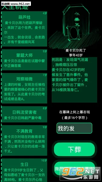 这款游戏真的超有趣!它是一款文字类模拟养成手游,没有华丽画面,却有着妙趣横生的文字叙述。游戏开始,设定好角色名字与性别,就开启了完全随机的命运旅程。
